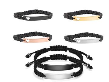 Reglerbara armband. De med hjärtan är lite mindre i storlek och passar små handleder eller barn/ungdom. Stålplatta utan hjärta passar de flesta vuxna.
