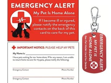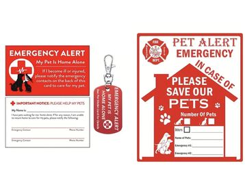 Hjälpmedel som alla djurägare bör ha. I detta kit ingår en nyckelring, informationskort med nödkontakt att ha i plånboken samt dekal att sätta vid ytterdörren hemma.