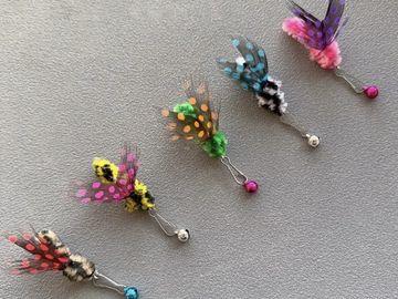 Liten fjäderlarv med bjällra att sätta på vippan. Vid köp av 5 st. blir priset 120 kr.