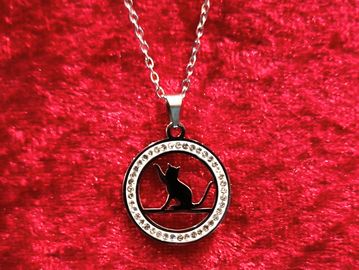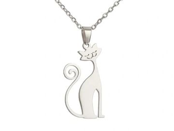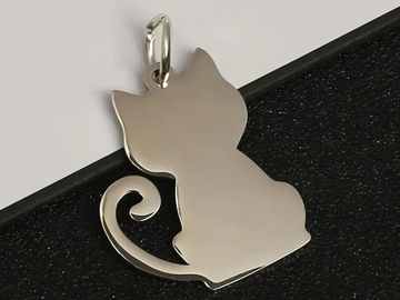 Kattsiluett som kan fås som halsband eller nyckelring. Vid gravering av namn tillkommer extra kostnad.