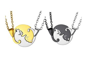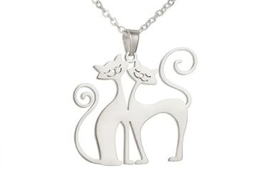 Halsband med ett kattpar. Perfekt för den som inte kan bestämma sig för en av katterna. Rostfritt stål.