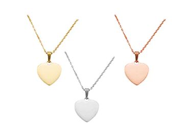 Halsband med hjärta kan fås med gravyr (extra kostnad). Finns i tre färger silver, rosé och guld. Rostfritt stål.