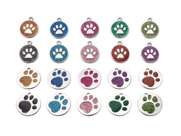 Små ID-taggar i form av tassar finns i oliak storlekar och färger.