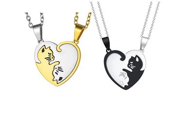 Parhalsband i form av katter som bildar ett hjärta. Rostfritt stål. Priset avser par.