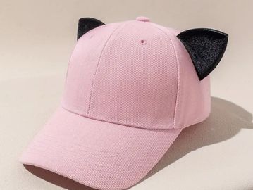 Keps med kattöron finns i två färger, rosa och svart. Justerbart spänne baktill.