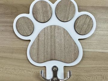 Krok med tass gjord av trä, finns med vit och svart bakgrund.